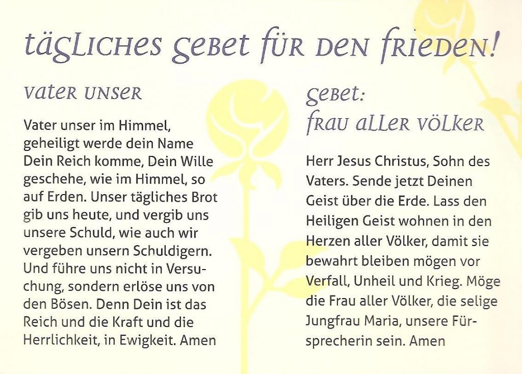 Eine Gebetsinitiative unserer organisation aus dem jahre 2016 für das tägliche Gebet. Die Karten können auf Wunsch gerne angefordert werden. Die Zustellung und die Karten selbst sind kostenlos.